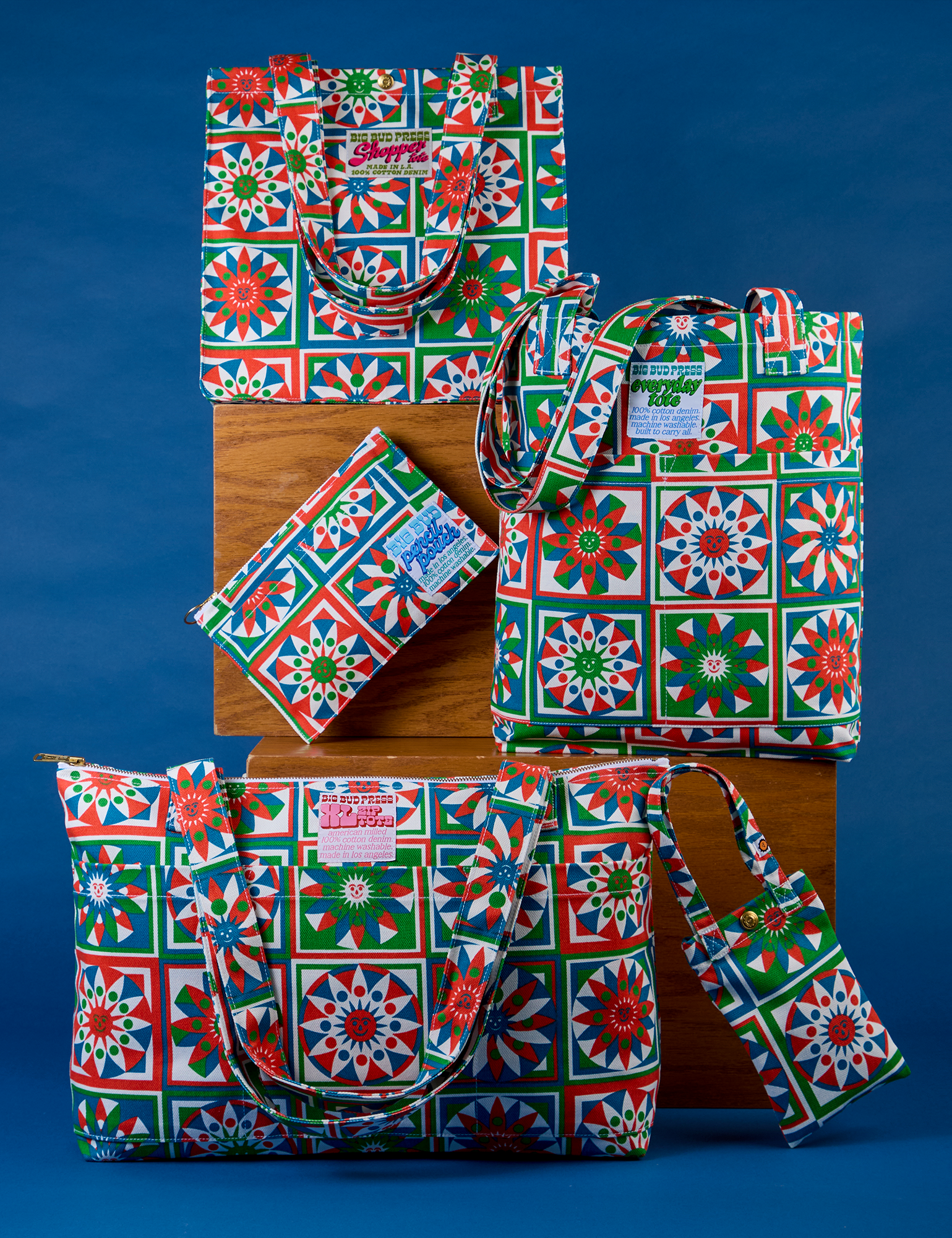 Responsibly and locally made. All of our goods are designed and made in Los Angeles. All of our fabrics are custom woven and custom knit in america with much of them being made locally in California with american grown cotton. Non toxic and low impact dyes are used in all of our dye processes. Domestically made components.
