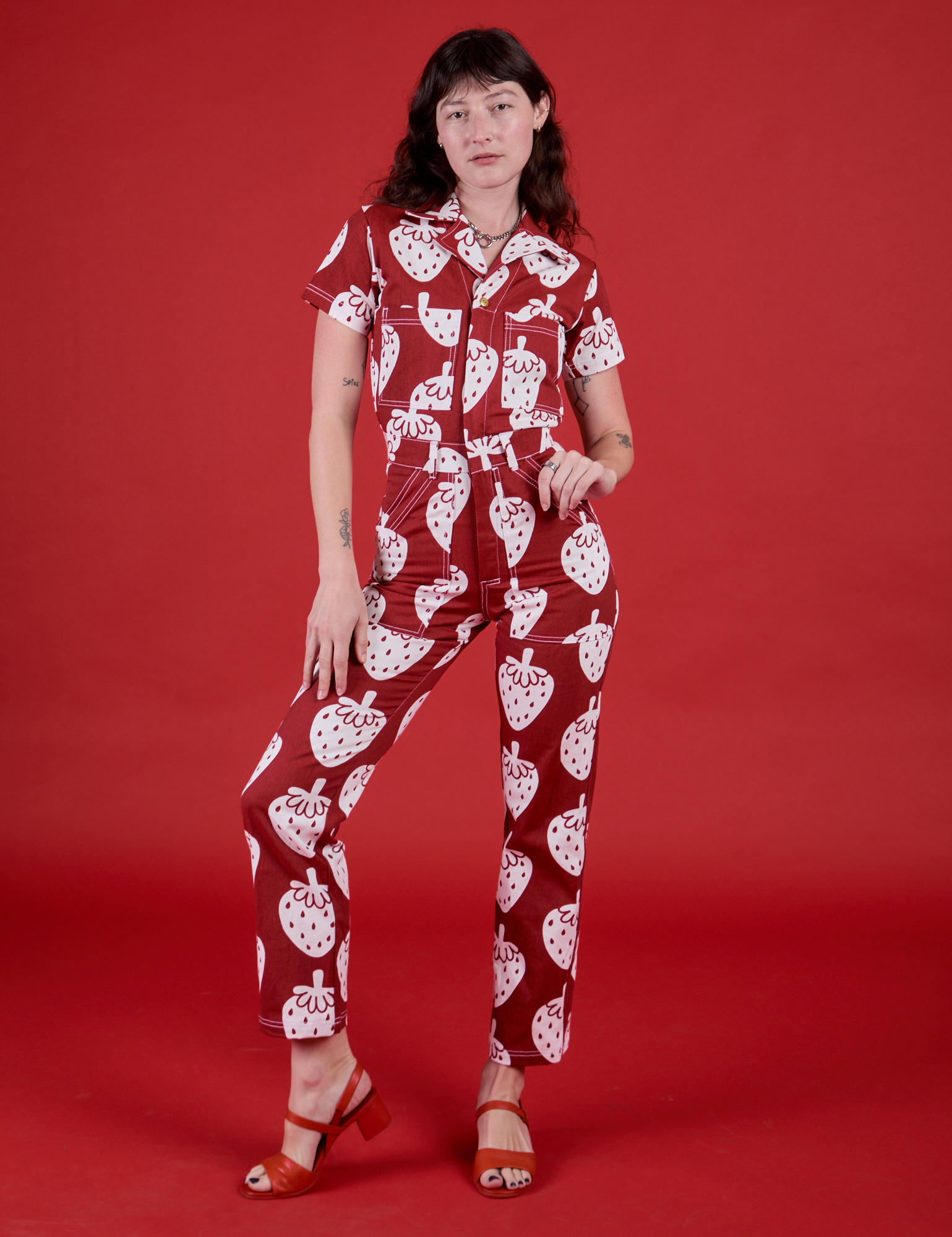 Our Jumpsuits are made from a sturdy 9oz 100% cotton twill that's custom woven for us in america. Every component of our jumpsuit-- down to the elastic, custom snaps, zippers, and labels, is made domestically.